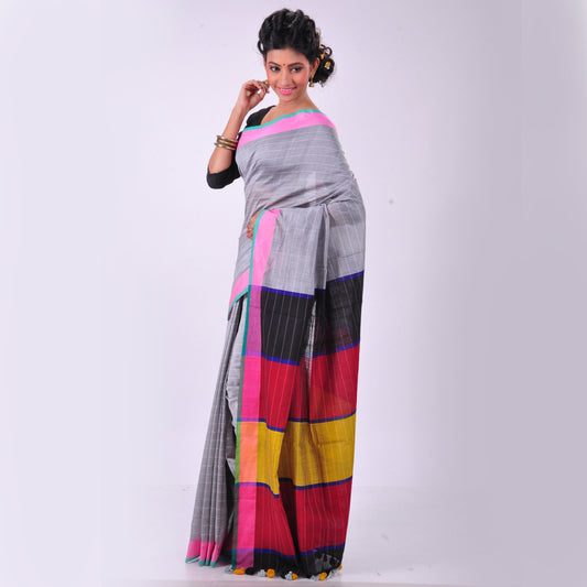 Grey handwoven cotton sari