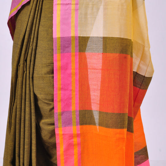 Mustard handwoven cotton sari